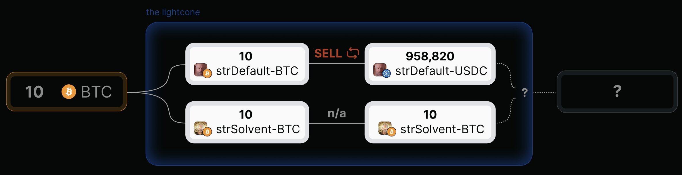If a default occurs, their strDefault-USDC will turn into real USDC. They have successfully hedged and sold Bitcoin before the event occurred; if no default occurs, their strSolvent-BTC can be exchanged for their original Bitcoin. They still hold a long position, and the hedging operation incurs no cost.