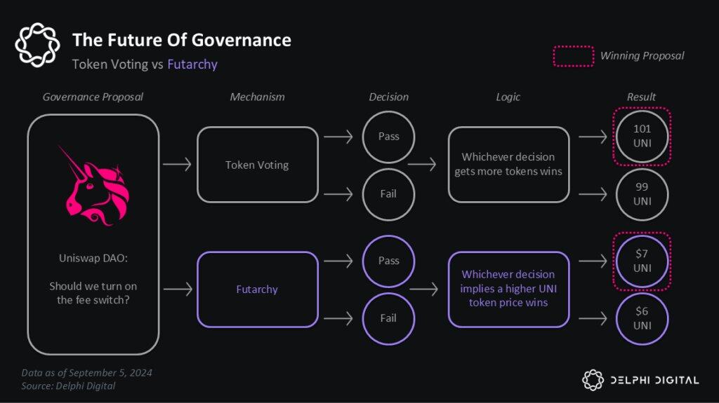 This is a governance model that delegates policy decision-making power to market wisdom. The core idea is: "People will vote based on values but will bet based on beliefs."