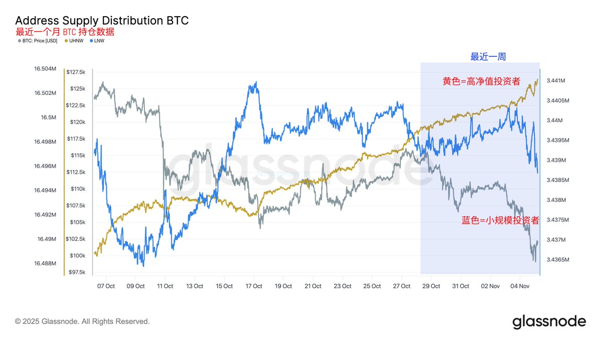 而持仓小于10枚 BTC 的小规模投资者受到价格的影响较大,虽然有抄底的动作,但是当价格下跌较大的时候往往会优先选择恐慌离场,所以 BTC 一至在流向高净值投资者。