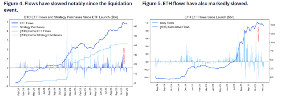 花旗在报告中指出,10 月 10 日的「黑色星期五」清算事件进一步损害了市场的风险偏好。虽然期货市场通常是零和游戏,但这次清算可能损害了加密原住民的风险承担能力,并抑制了新潜在 ETF 投资者的风险偏好。