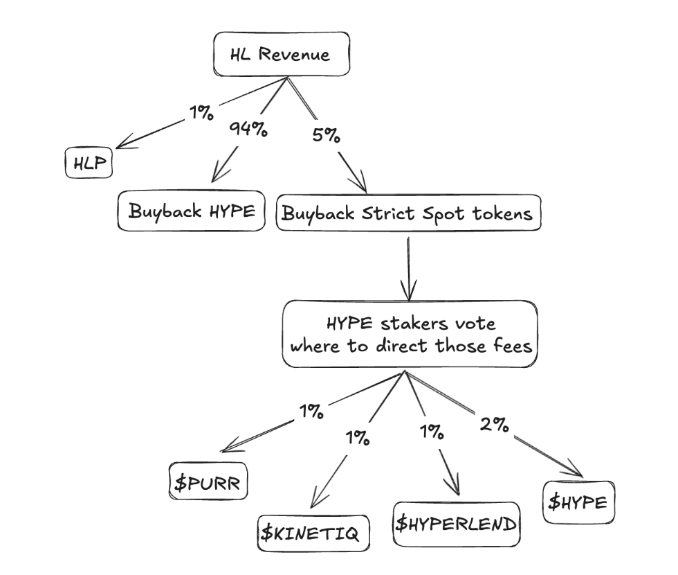 HIP-5 提议将 Hyperliquid 协议手续费的 1%(逐步提升至 5%)划入一个新的基金 AF-2(Assistance Fund 2),用于回购生态内特定的「Strict List」代币,如 PURR、HFUN 等。