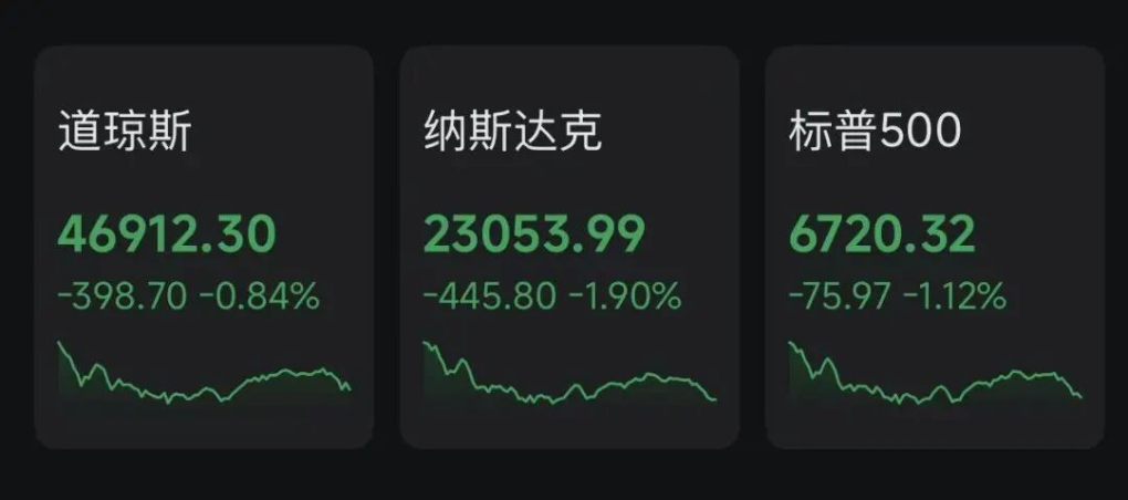 道指下跌0.84%,标普500指数下跌1.12%,纳斯达克指数更是重挫1.9%。与此同时,黄金价格在避险推动下短暂冲高后回落,上演了一轮惊心动魄的“过山车”行情。