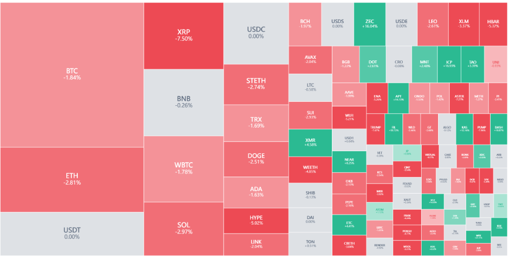 ● 加密市场同样未能幸免。比特币下跌2.5%,以太坊一度跌超5.6%。