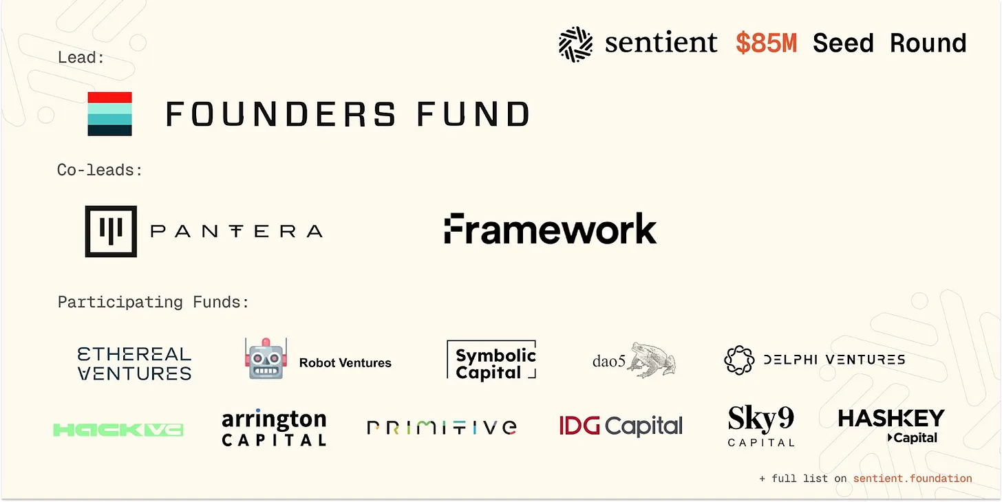 Sentient还拥有实现这一愿景的强大基础。整个团队的70%以上由开源AGI研究人员组成,包括来自哈佛大学、斯坦福大学、普林斯顿大学、印度科学研究所(IISc)和印度理工学院(IIT)的研究人员。该团队还包括在Google、Meta、Microsoft、Amazon和BCG获得经验的人员,以及全球区块链项目Polygon的联合创始人。这种组合提供了人工智能技术能力和区块链基础设施开发经验。Sentient从包括Peter Thiel的Founders Fund在内的风险投资公司获得了8500万美元的种子投资,为全面推进奠定了基础。