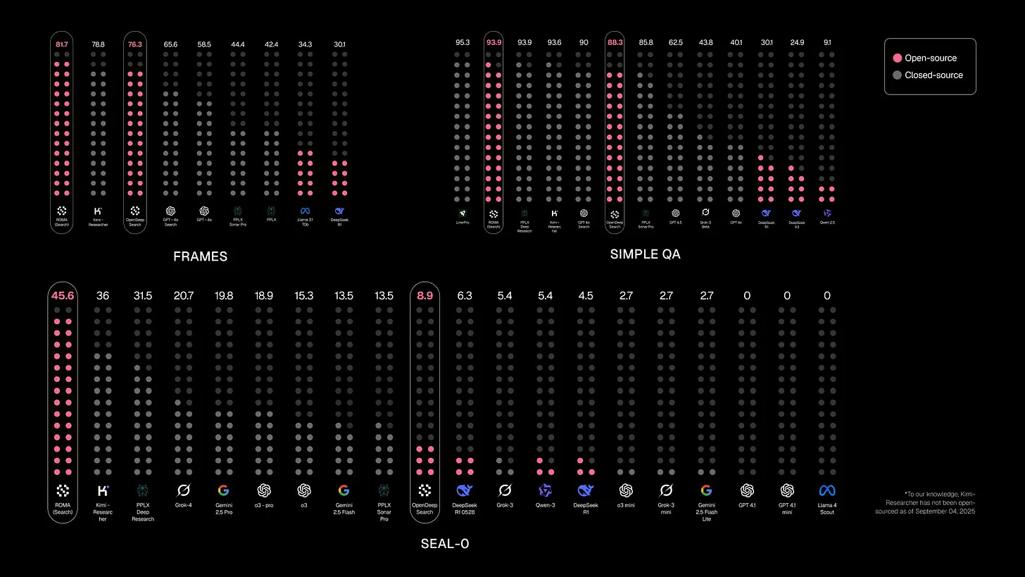 ROMA在性能方面也提供了令人印象深刻的基准结果。ROMA Search在SEALQA的SEAL-0基准测试中记录了45.6%的准确率,这是Google Gemini 2.5 Pro的19.8%的两倍多。ROMA还在FRAME和SimpleQA基准测试中展示了稳固的性能。这些结果不仅仅是简单的数字,具有重要意义。它们清楚地表明,仅"协作结构"就可以超越高性能单一模型。此外,它们通过实际证明Sentient可以仅通过各种开源模型的组合构建强大的人工智能生态系统而具有重要意义。