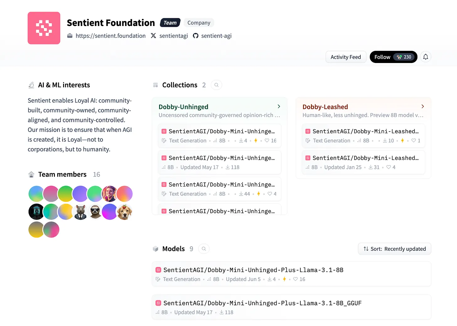 然而,仅凭理想无法创造现实的变化。Sentient寻求通过直接执行来证明可能性,而不是让其愿景停留在理论层面。该公司在构建基础设施的同时推出了像Sentient Chat这样的用户产品,以展示开放生态系统实际上是有效的。此外,Sentient直接开发像Dobby这样的加密货币专用模型。Dobby代表一个社区驱动的模型,社区处理从开发到所有权和运营的所有事情,测试这种治理是否真的在开放环境中发挥作用。