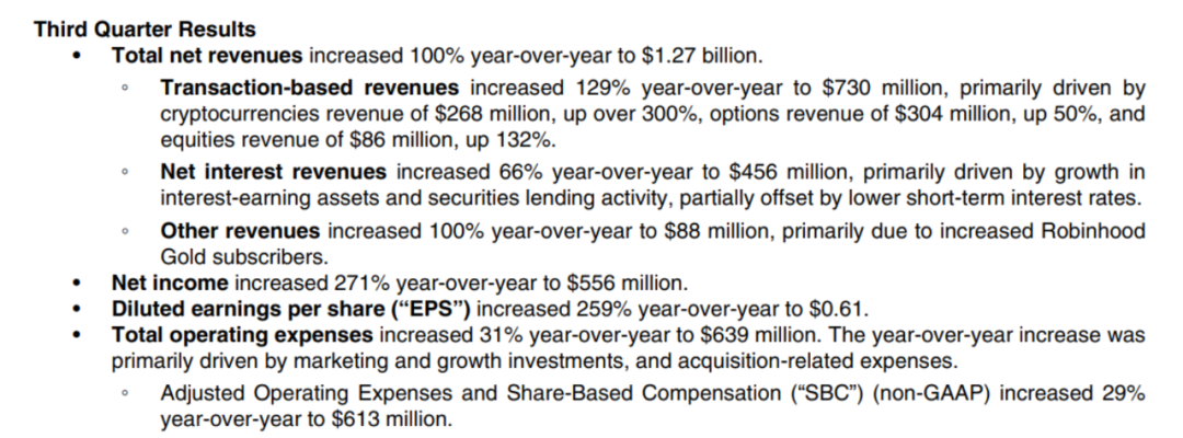 交易收入整体增长近130%,达到7.3亿美元,每股收益增长近260%,达到0.61美元,超过了分析师预测的0.51美元。