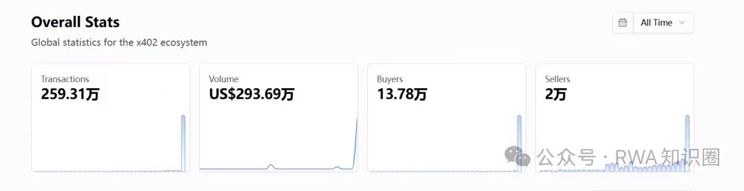 • 生态系统共记录支付 2,593,100 笔,总支付金额约 293.69 万美元;
