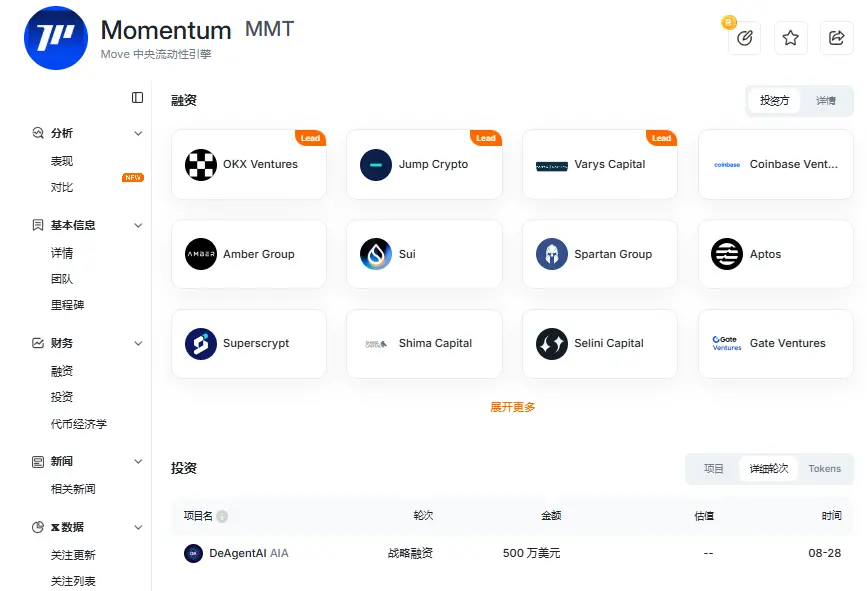 据悉,Momentum作为 Sui 网络上领先的集中流动性做市商(CLMMDEX,以其基于Uniswap v3式架构和高效率的交易机制吸引了广泛关注。据 Rootdata 信息显示,Momentum 先后获得 OKX VenturesJump CryptoVarys CapitalCoinbase VenturesAmber GroupSui 等机构的投资,并于今年8月参与了DeAgentAIAIA)的500万美元战略融资。