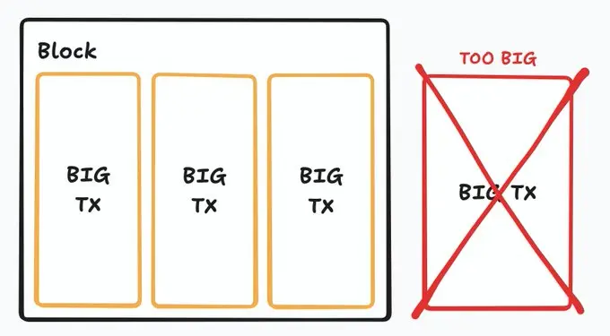 EIP-7825(交易Gas上限提案)将单笔交易的Gas上限设定为2^24(约1600万Gas),相当于单个区块容量的三分之一略多。