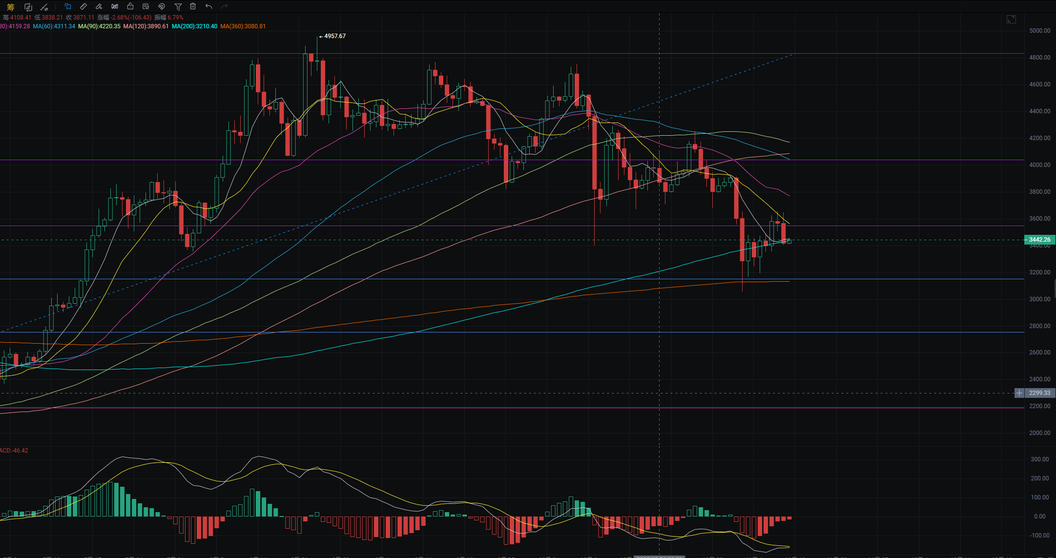 Ethereum broke below $3,500 last night, and it is expected to enter a volatile market in the short term, with a bearish overall direction, focusing on short positions.