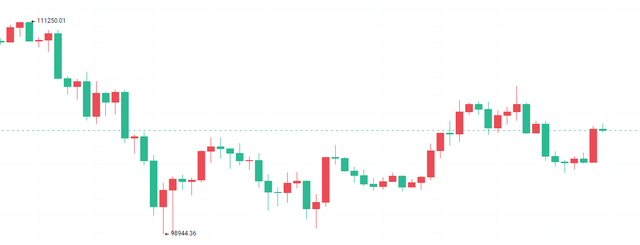 4小时级别以阳线主导,冲高至105000一线遇阻后回落至104800附近震荡;布林带处于收敛状态,短期多空切换节奏将放缓。