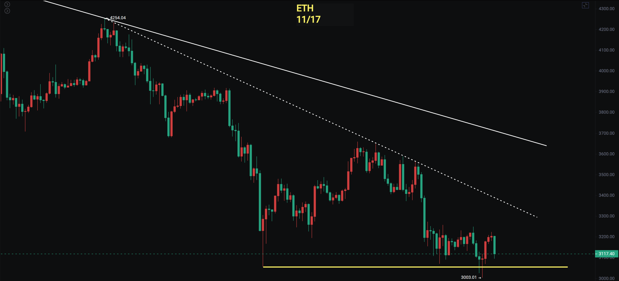 25/11/17美股周线重新跌回,BTC持续跌出新低,暂还没出底但接近