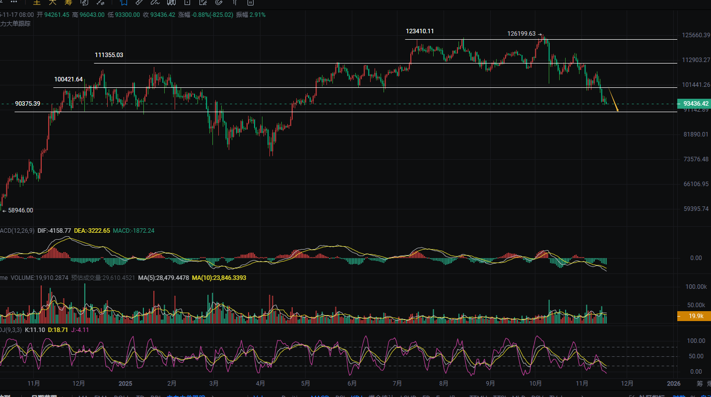 这个周一行情有点拉胯,大饼居然只有3000个点的波动,要真说下跌没预兆也不至于,但周一的下跌幅度太短,就导致容易认为它只是一波回调罢了,只要有这个交易判定,那周一的交易操作反而还轻松很多了,况且这波下跌的意义在我看来很大,能在周内完全过山车,上演先涨后跌,那就预示着本轮下跌基本是具备延续能力的,特别是本周初,我依然对币价低点是否到位保持怀疑,所以我哪怕进了空,也还在继续拿着没走,我就要等它再刷新一下前面的低位才罢休。