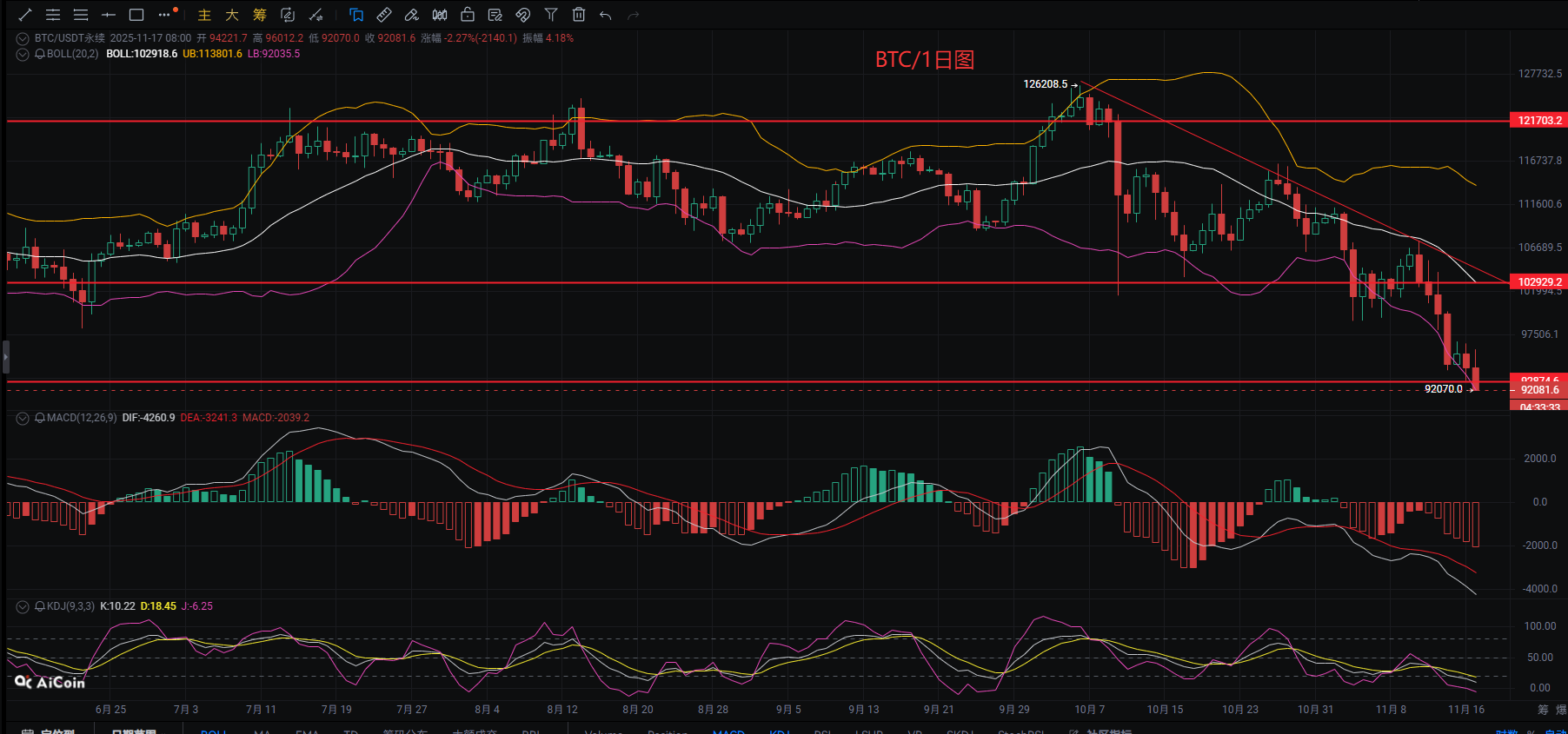 比特币日内价格走出反弹测试,行情日内试探96000区域,可惜后续价格并未顺势突破,短线在多次试探之后,多头情绪开始转弱,价格再度回调,短期走势还是维持弱势震荡,日内的涨幅回吐,再度刷新前低,弱势震荡格局没有改变,所以币先生建议操作之上建议,反弹空单为主,空单关注95000-96000附近,多单关注稳健关注9万至-91000附近,