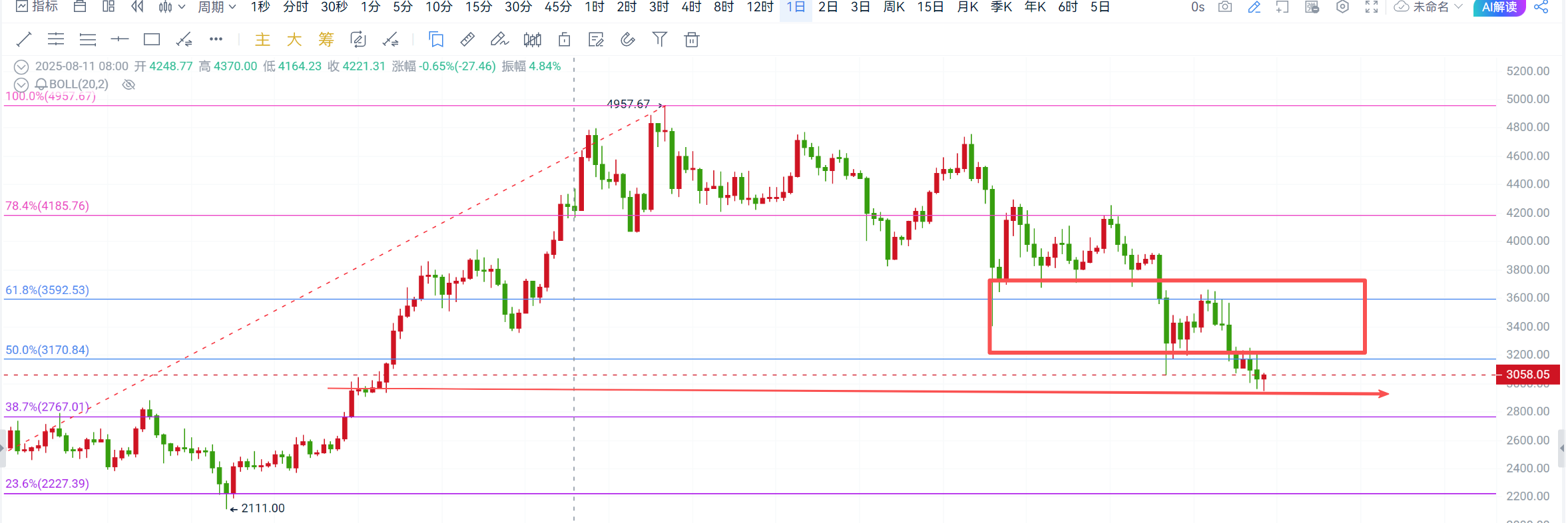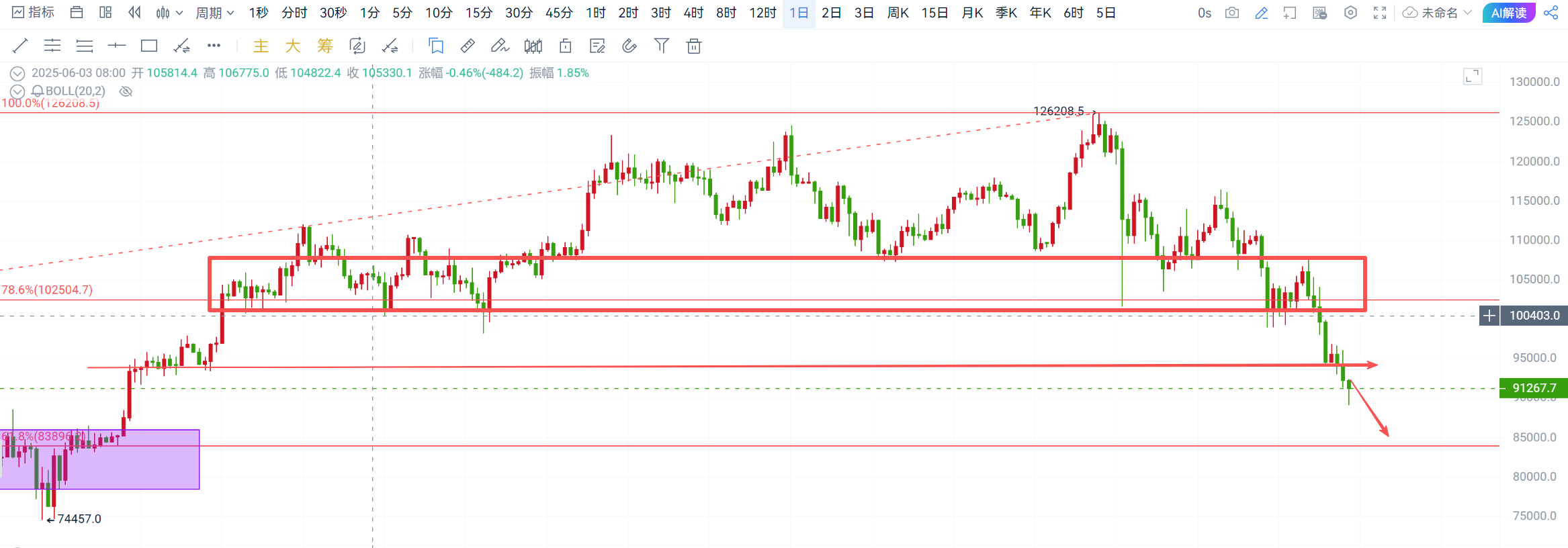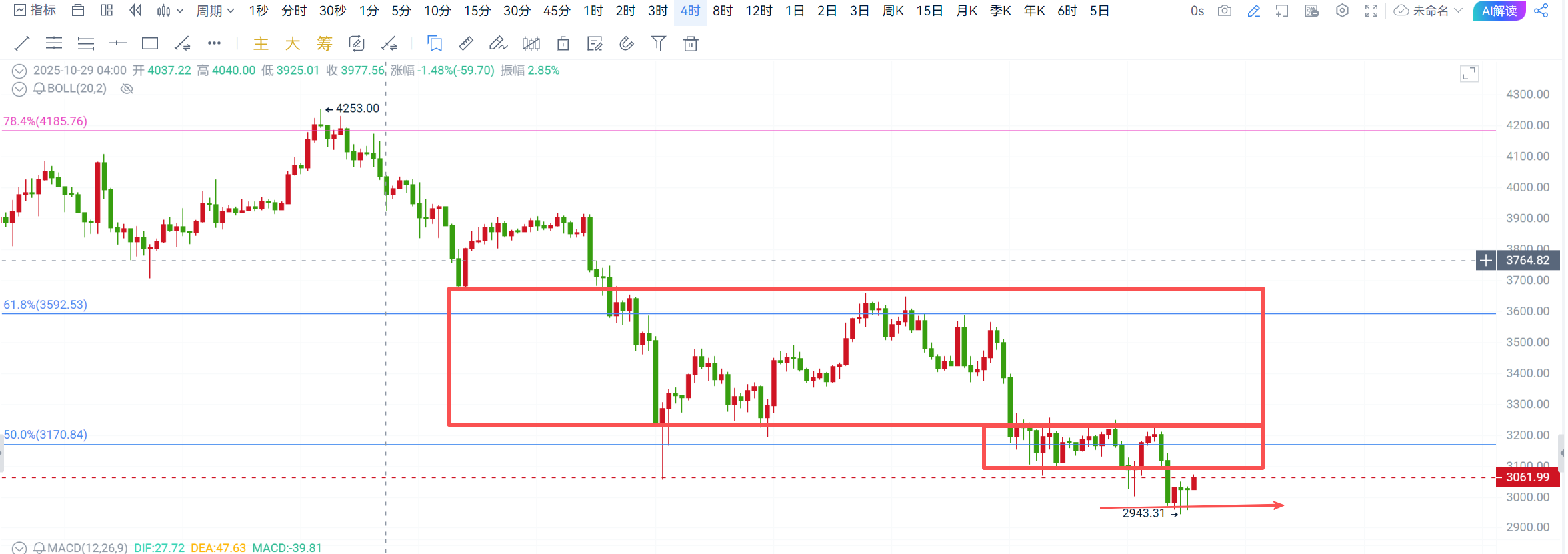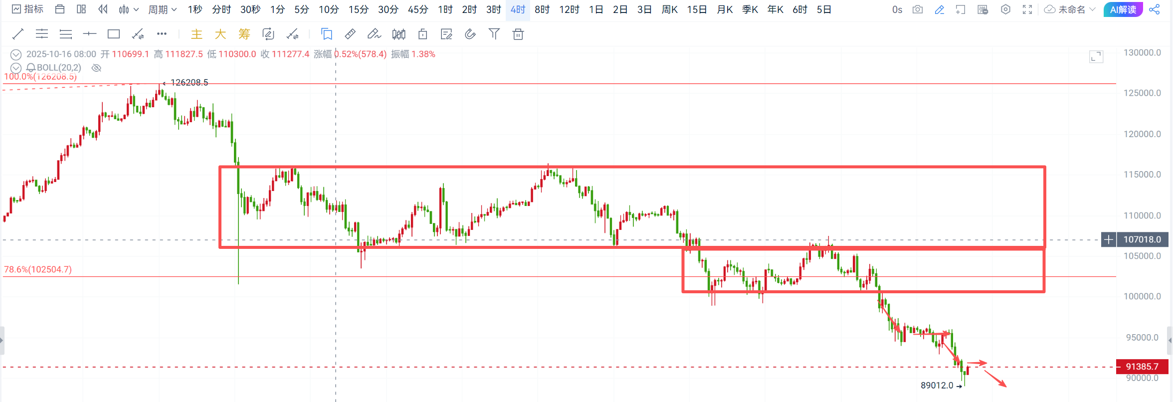 日线级别看,大饼在调整两日后延续下行节奏,最低跌至89000附近,实体已走出下破94000支撑,后续此处可视为短期压力位,支撑暂时参考低位89000一线!以太同样再破新低至2950附近,实体已走出下破3100支撑,此处也可视为短期压力位,支撑暂时参考低位3950!