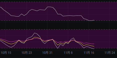 Mfi和rsi上看,两个指标都在弱势区域,rsi已经到了超卖区域,如果rsi继续徘徊在超卖区域,那行情很可能会出现连续的下跌走势。