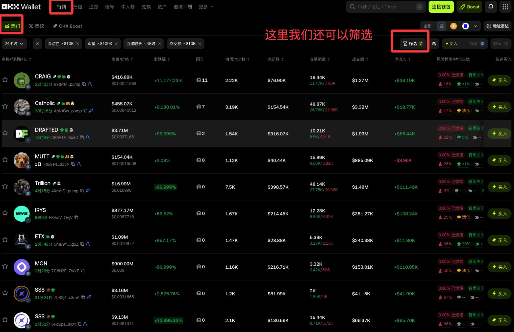 I must praise OKX for its clear categorization, saving us a lot of filtering time! Next, our goal is clear: filter out the "Smart Money" that can truly help you make money, not the "victim addresses" that just follow the trend.