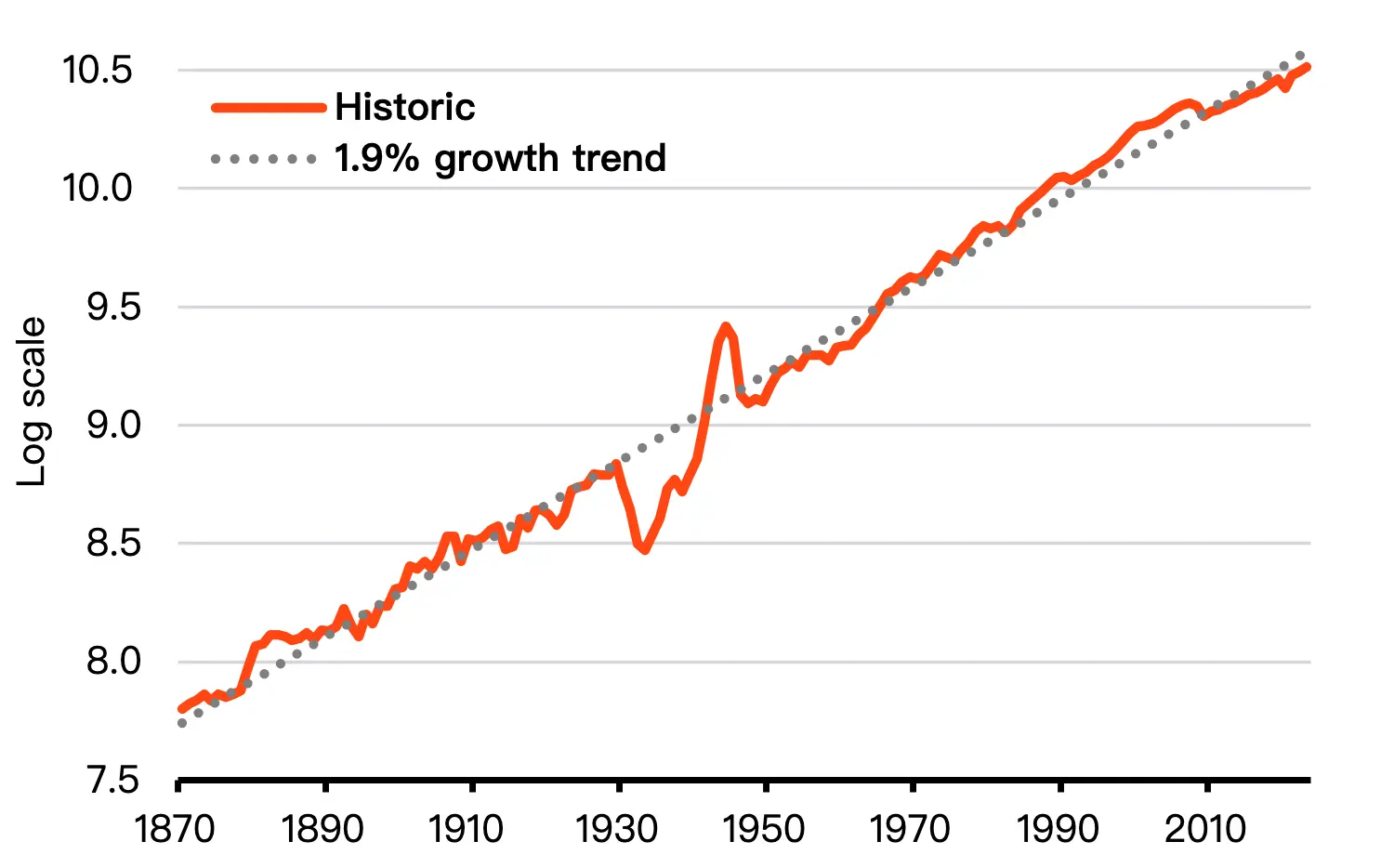 但这足以推动美国经济突破长期 2% 的趋势线吗?过去 150 年所有的重大创新 —— 包括蒸汽机、电力和数字革命 —— 都未能实现这一突破。然而,AI 或将使其首次成为可能。原因在于,AI 不仅自身是一项创新,更具备加速其他创新的潜力。它不止于自动化任务,更可通过自我学习和迭代改进,从而加速创意生成和科学突破。
