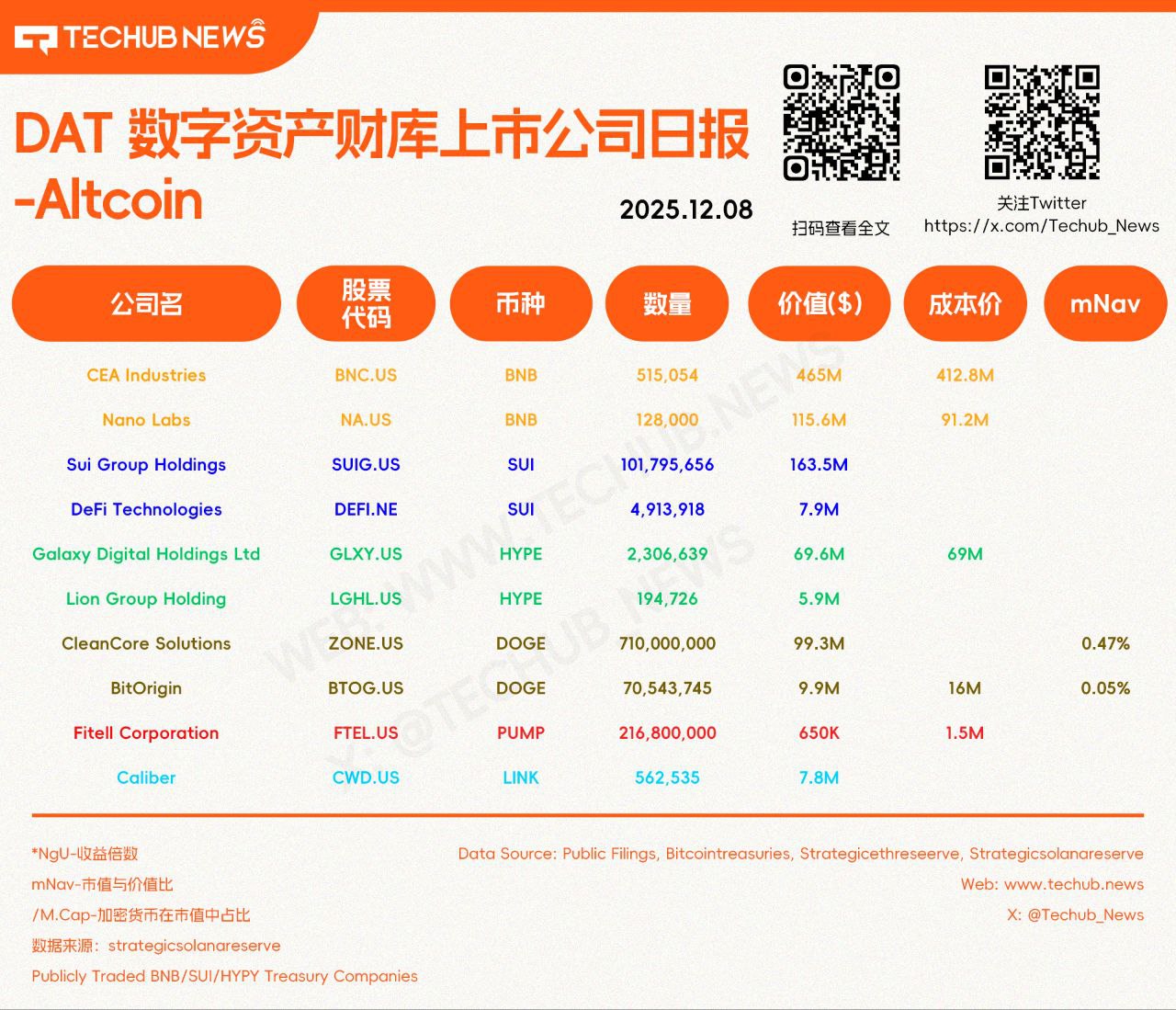 今日动态强化了企业财库与DeFi的融合趋势,比特币持仓扩张或支撑价格底部。关注HumidiFi公售后SOL生态反应,以及解锁事件对Altcoin的影响。明日数据更新将进一步揭示布局深度。(数据截至2025.12.8 18:00,来源:TechHub News、Treasury Stocks)