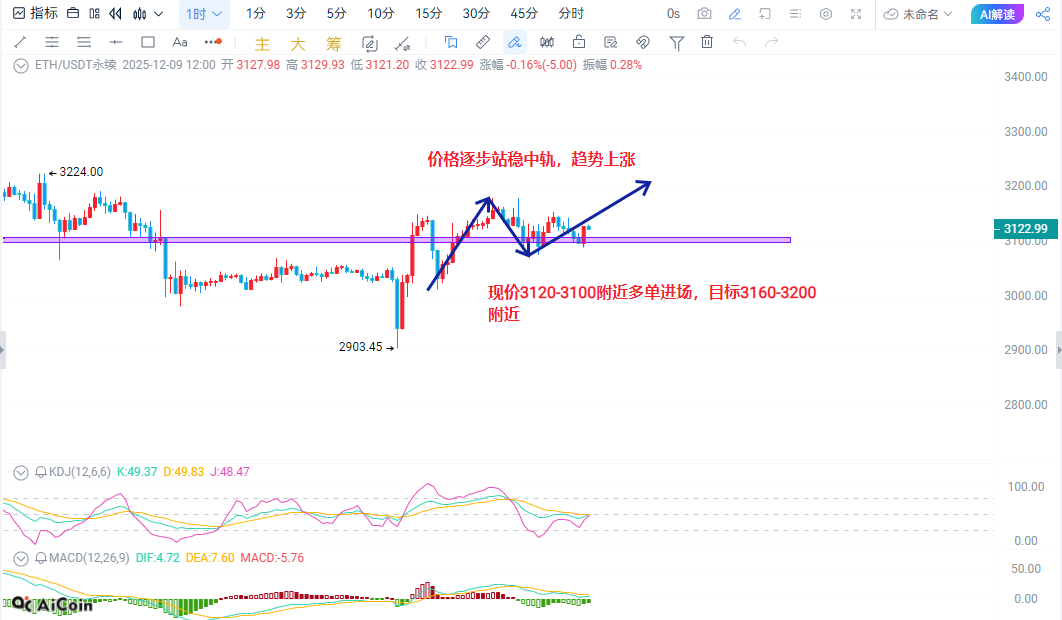 建议以太现价3120-3100附近多单进场,目标3160-3200附近