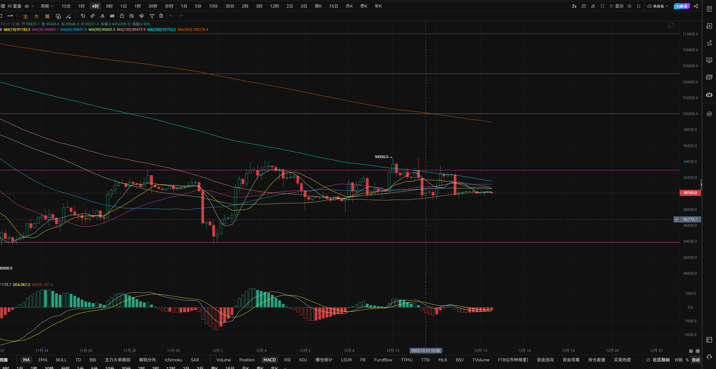 周未换手率大幅下降,终于到了正常点的时候,但下周工作日开始,可能就又要上来了,换手率越高,说明整体投资者的情绪还是比较紧张的,尤其是短期投资者,下周还有三个大数据,估计震荡会加剧了,筹码结构还是很稳定,也没有见到投资者的恐慌,感觉现在是在重新在稳定筑底的过程,可能且得磨了。下方回踩89050附近可进行接多,反弹目标可看至91250附近