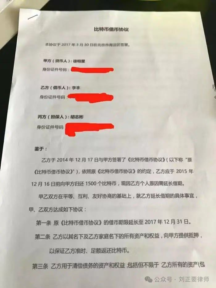 此类案件以虚拟货币作为借贷标的物,通常涉及出借人将特定数量的比特币、以太坊等借给借款人,并约定到期后按数量或折算人民币返还。最近网上开始流传欧易老板徐明星曾借出1500个BTC,对方到期未还,徐老板至今维权未果。