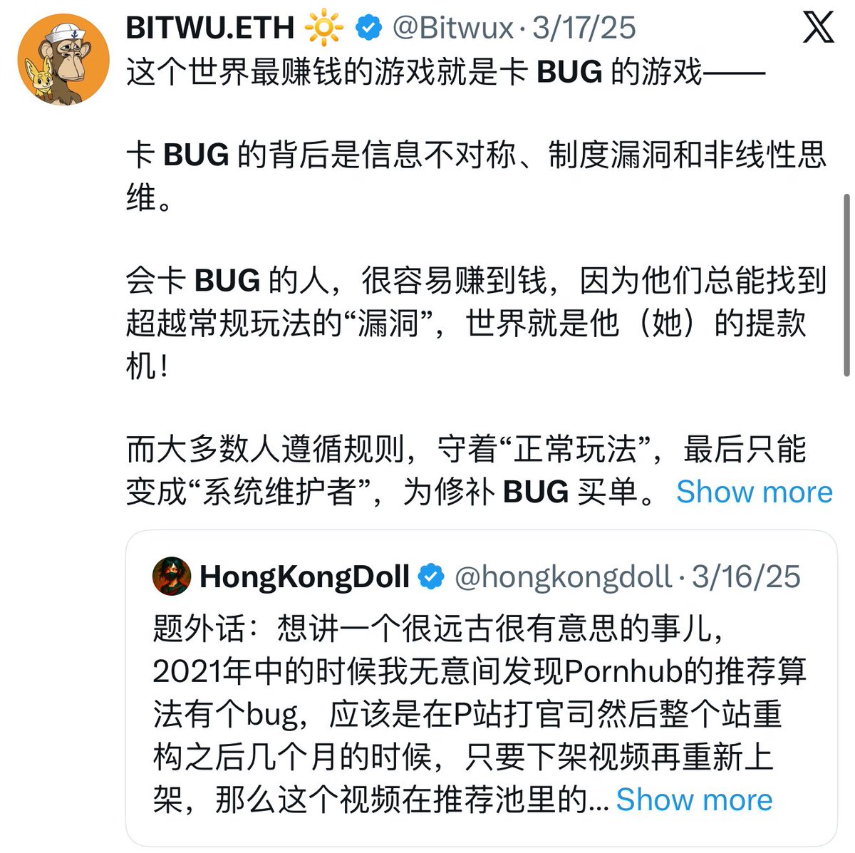 这个世界最赚钱的游戏就是卡 BUG 的游戏,卡 BUG 的背后是信息不对称、制度漏洞和非线性思维。