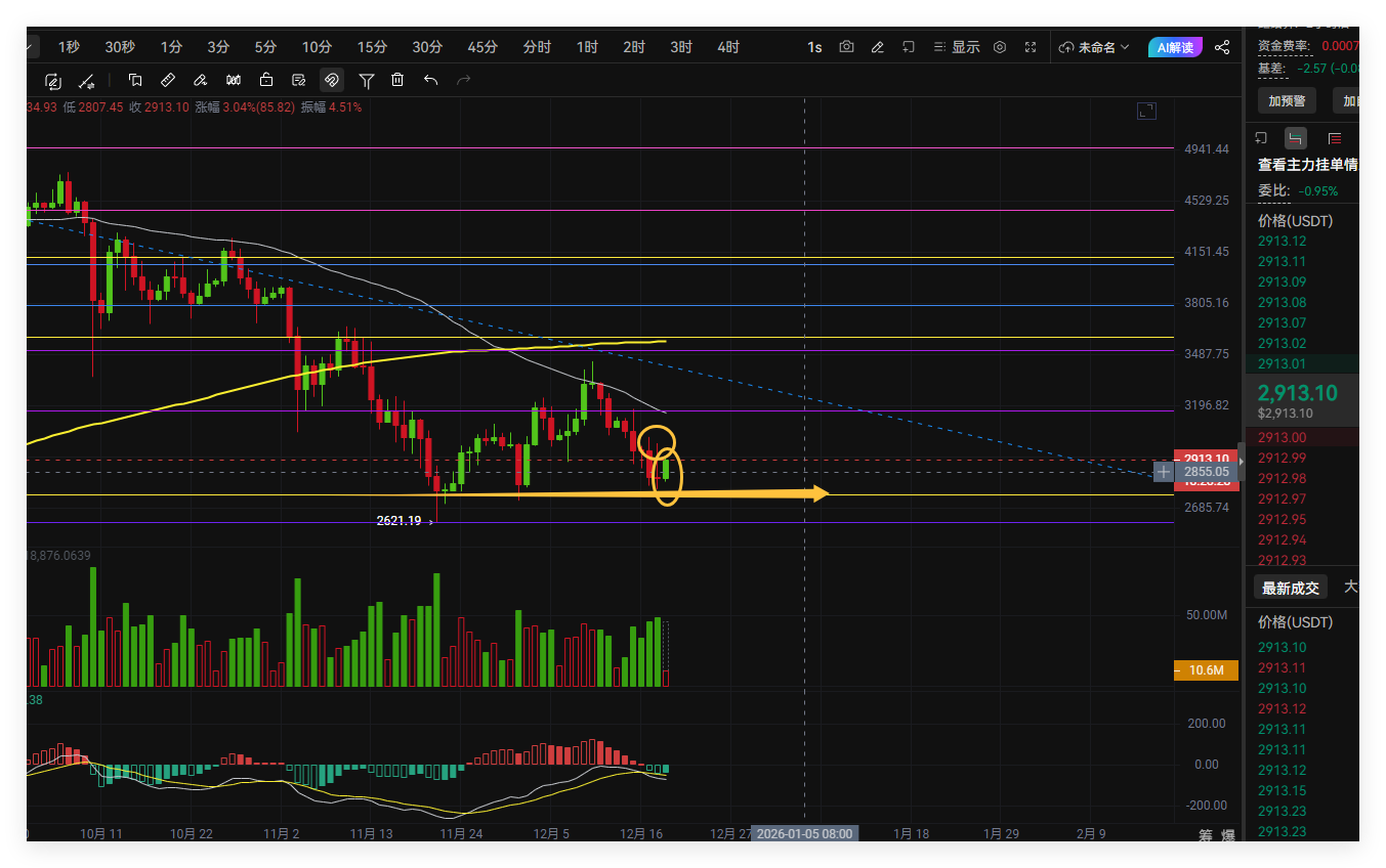 昨日比特币晚间先给到拉升,拉升高点在89468位置,随后半夜12点换线后快速下跌,下跌低点在84401附近,直线下跌5000点,以太坊拉升高点是2997附近,随后直线下跌至2772位置,反弹基本到达我们昨日布局目标,今日白盘关注高点破位;