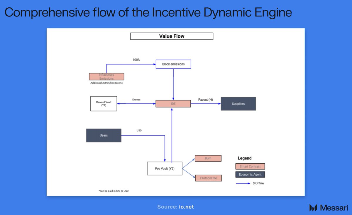 http://io.net @ionet 正在从供应主导的排放模式转向以公用事业驱动的代币模型,将 $IO 锚定于真实需求和 GPU 支付;其激励动态引擎 (IDE) 使用双保险库系统以美元稳定供应商收入,并根据实际收入动态铸造或销毁代币。