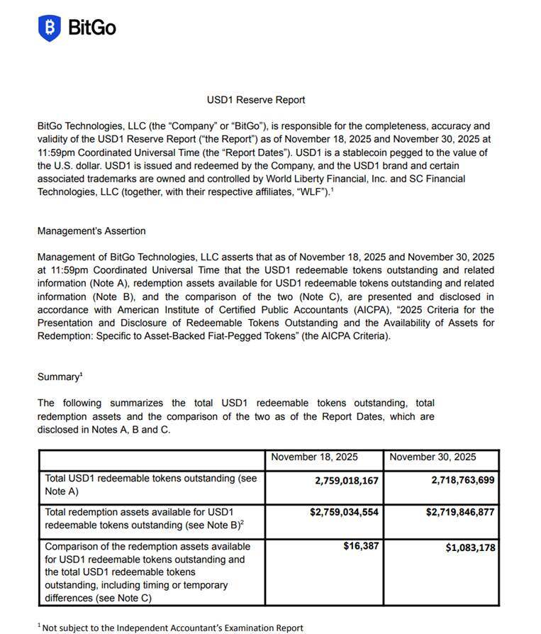 In terms of reserve proof and auditing mechanisms, the USD1 team publishes regular reserve reports/audits, transparently disclosing reserve quantities and asset distributions to the public, with U.S. dollar reserves subject to regular review by independent third-party companies.
