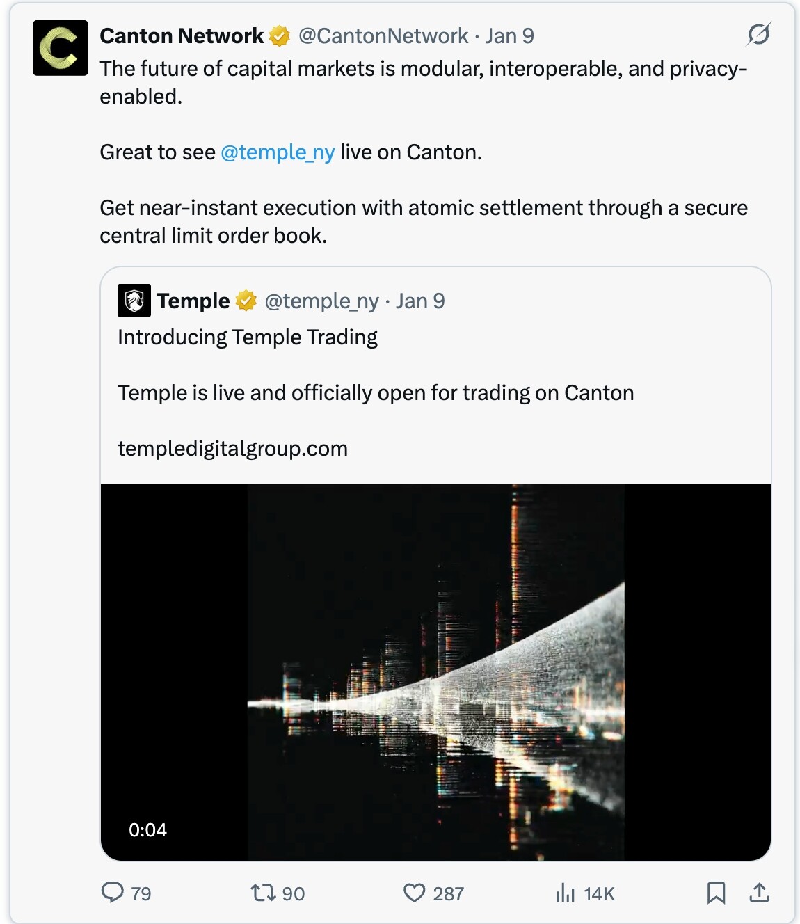 • Canton's DTCC MVP → Testing institutional-level settlement capabilities;