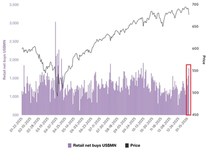 只要散户这种持续性的净流入还在,指数就很难出现那种彻底失控的单边崩盘,因为每一次回撤都会天然触发买盘接力,价格会被不断托起来。