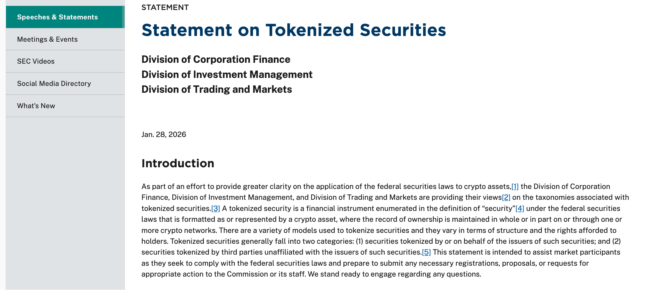 在全球资产代币化浪潮席卷金融市场的当下,美国加密监管再次升级。今日,美国证券交易委员会(SEC)就「代币化证券」领域发布了由公司金融部、投资管理部以及交易与市场部联合制定的指南。