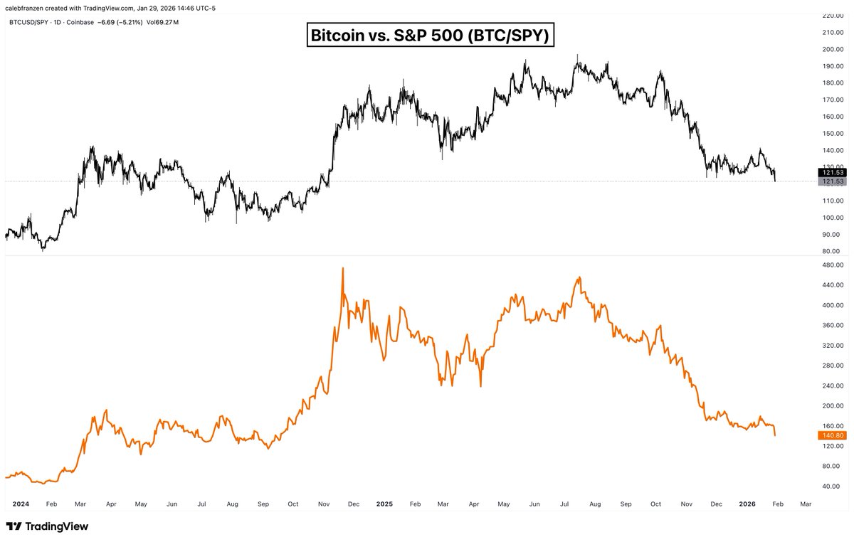 这可能是在比特币相对于股票触底的时候。