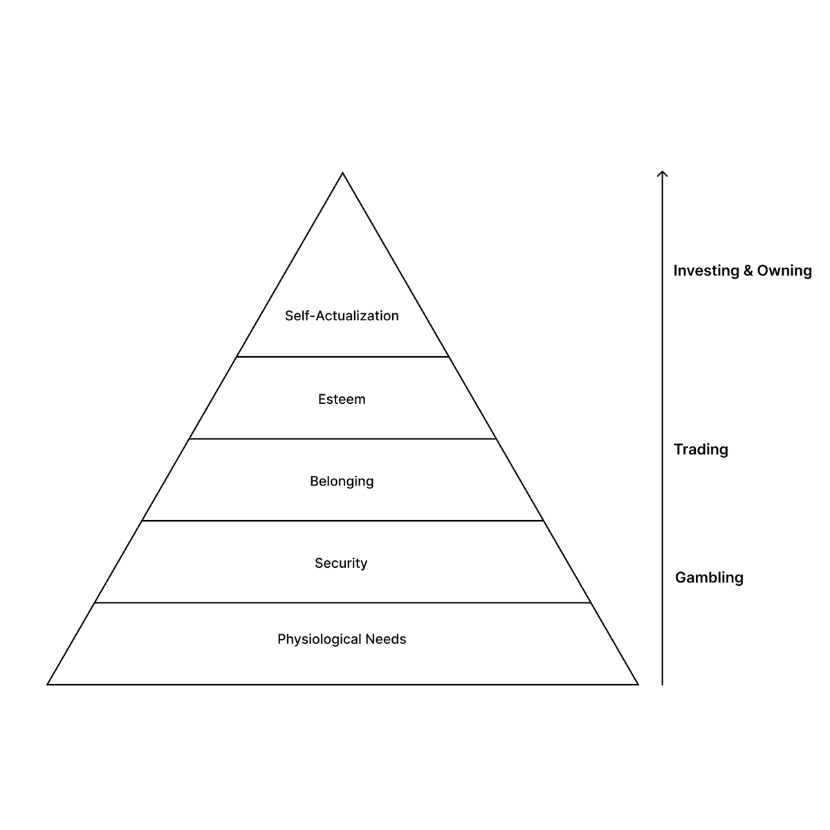 • 赌博和交易满足较低层次的需求:安全感(通过大赚一笔来逃离经济困境),或者是归属感(比如WallStreetBets试图对抗Citadel,或者你和朋友一起押注球队)。