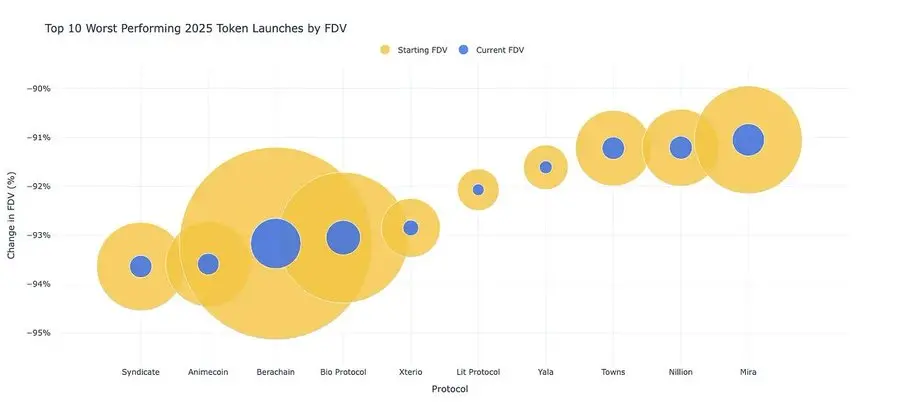 2025年,大约有118个主要代币发行,其中84.7%跌破了其代币生成事件时的估值。这些数字看起来非常糟糕,往往令人失望,导致我们要质疑投资新代币是否值得。这些代币以泡沫般的估值发行,全年的价格走势令人担忧,即便到现在也处于下跌状态,因为更广泛的市场环境表现也并不理想。