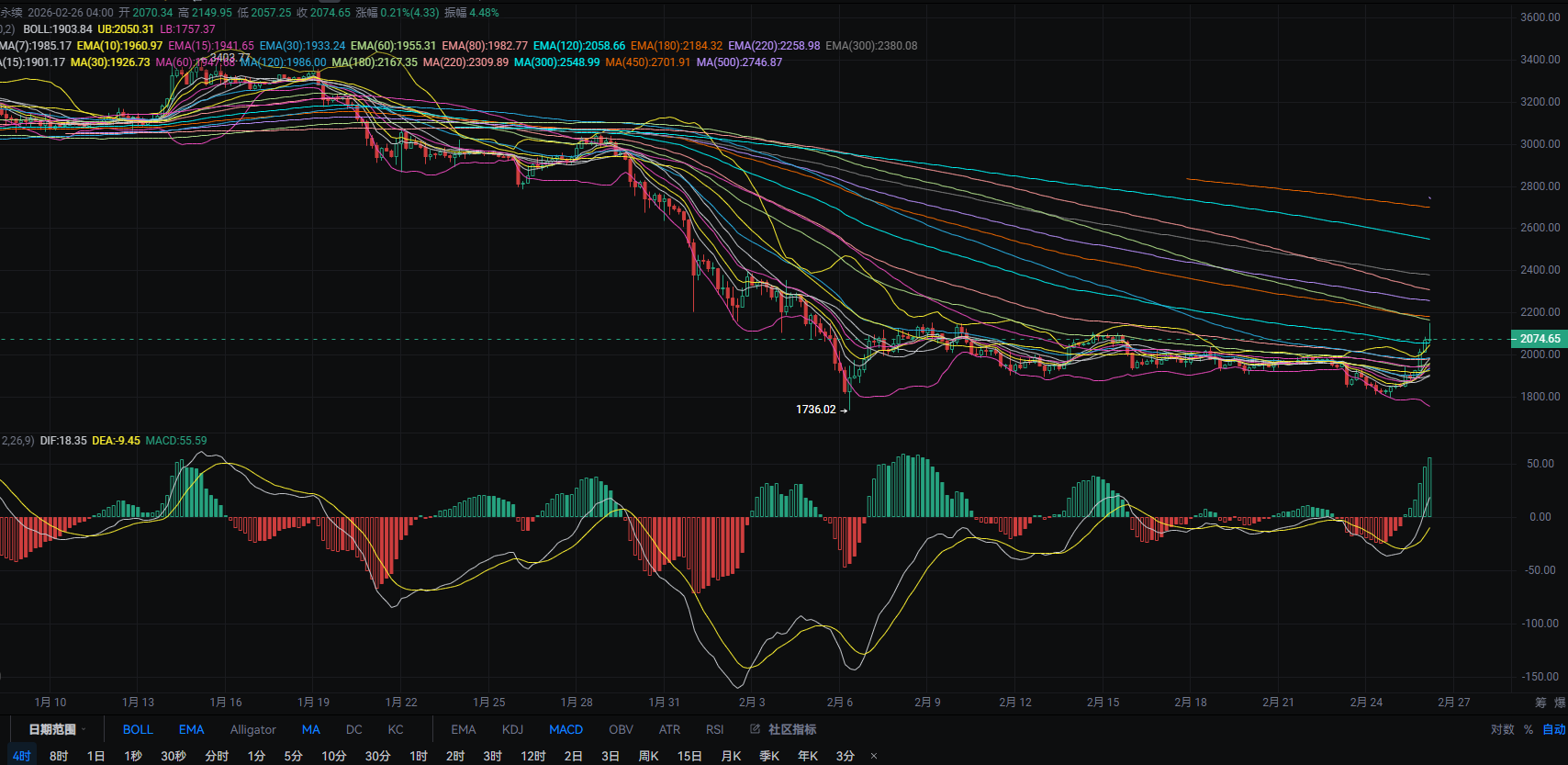 张历辉北京时间2月26日6点52分编辑:以太坊行情分析及操作建议: