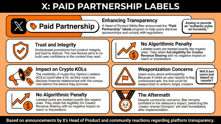 加密推特的死亡?X宣布“付费合作”标签计划