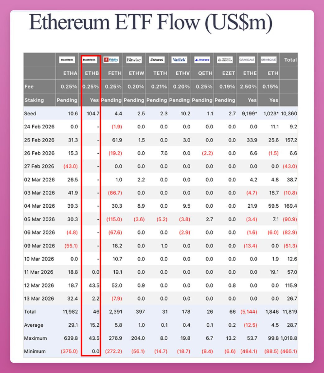 据我所知,贝莱德创建了一个单独的产品,而不是将质押添加到ETHA中,很可能是因为质押增加了削减风险,而一些投资者希望避免这种情况。