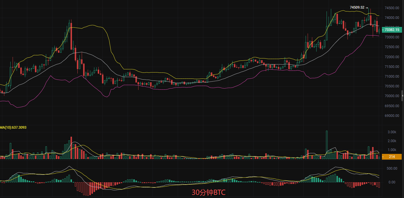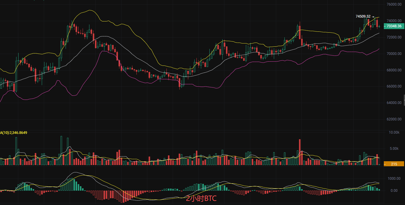 做多策略:回踩72500到72000轻仓追多,目标看74500,跌破72000止损。