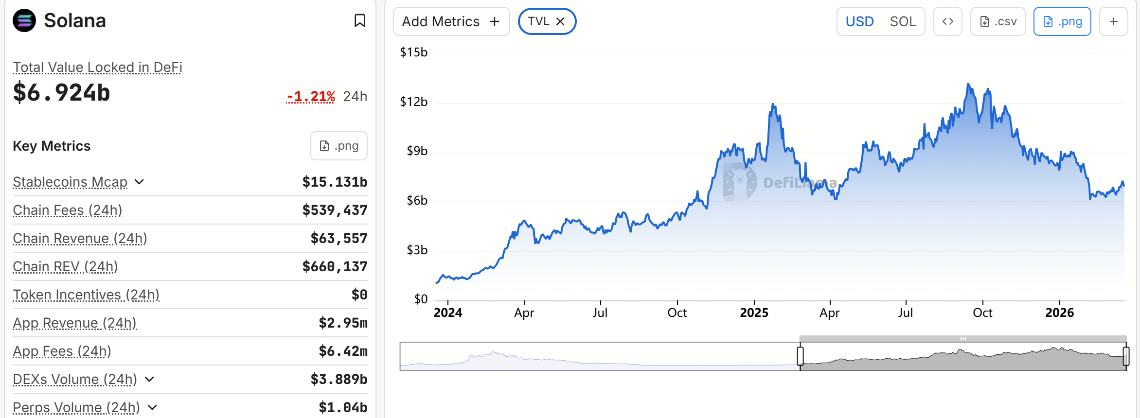 来源:https://defillama.com/chain/Solana