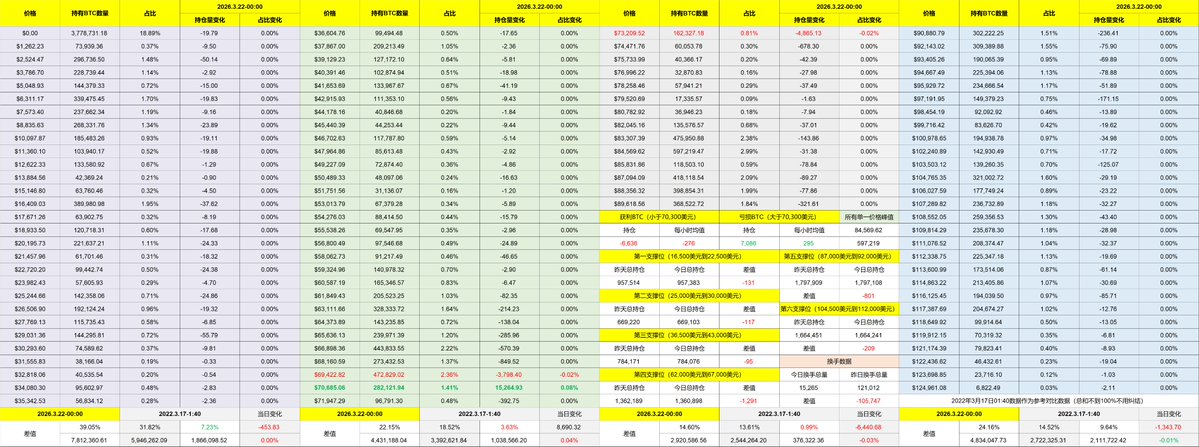 回到 Bitcoin 的数据来看,这段时间价格还是很坚挺的。美股在一直下跌的时候 $BTC 还能守住 70,000 美元附近已经是不错了,起码从目前的数据来看投资者对于 60,000 美元上下的筹码兴趣还是挺高的,抛售也是明显降低了。