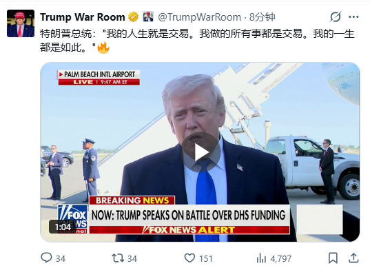 美股行情好不好,全掌握在一个人嘴里!正如懂王说的,人生就是交易,无所不在的交易😂