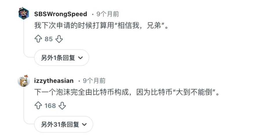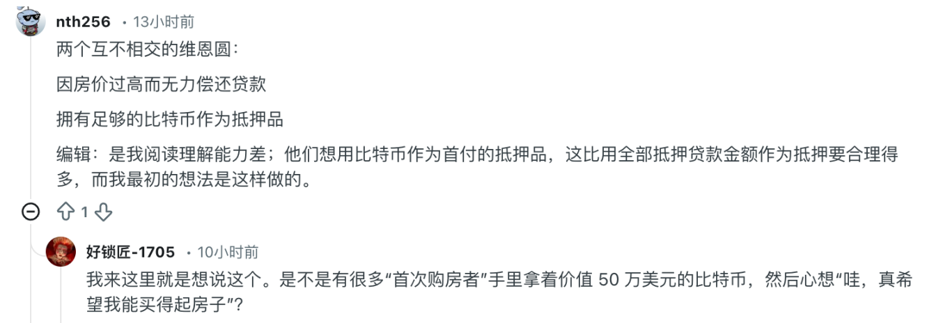 在 Reddit 里,很多美国民众对此很不解:如果我的投资组合里有 20 万美元的比特币,我怎么会凑不出 8 万美元的首付?如果我没能力凑出首付,我又怎么可能有钱买比特币?