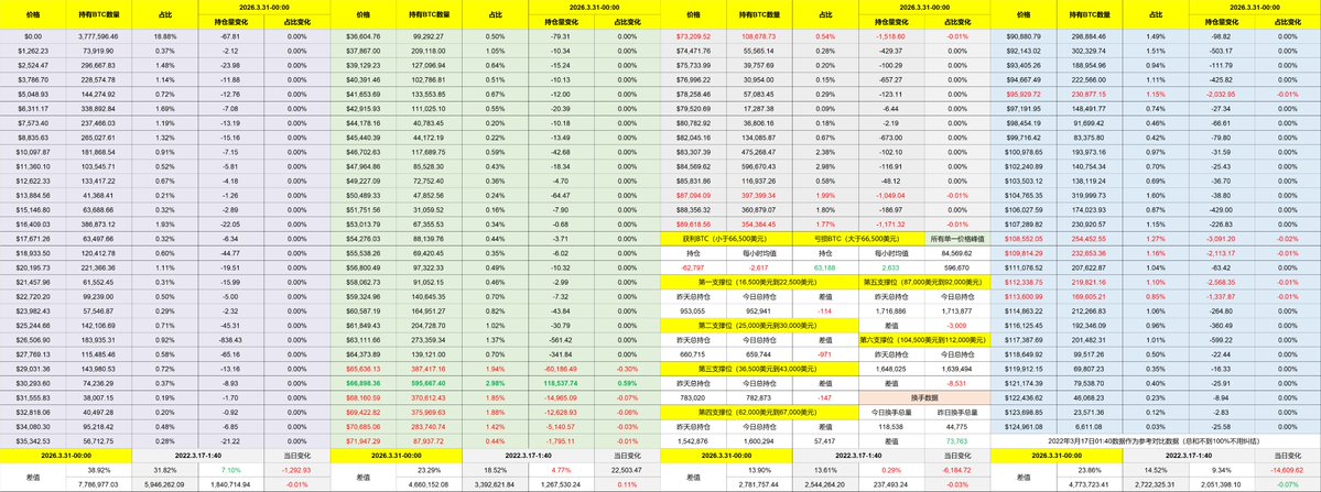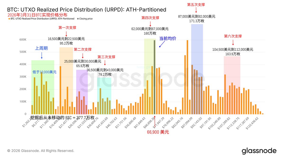 回到 Bitcoin 的数据来看,虽然战争的延续,美油的继续上涨,短期投资者的情绪在继续走低,连带 $BTC 的价格也在继续下行,伊朗的战争就是现在 BTC 最大的枷锁,但战争结束以后,仍然还有很多的枷锁等着,而这些枷锁大部分都是源自于川普。