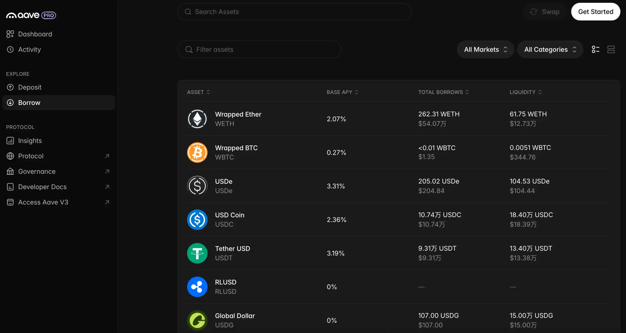 虽然官方的说法是可以整合碎片化的流动性,但在实际操作中,对于抵押优质资产进行借贷的用户其实区别并不大。例如你想要抵押 ETH 借出资产,在 V3 和 V4 的操作并没有不同,只要可以保证健康因子不要过低。