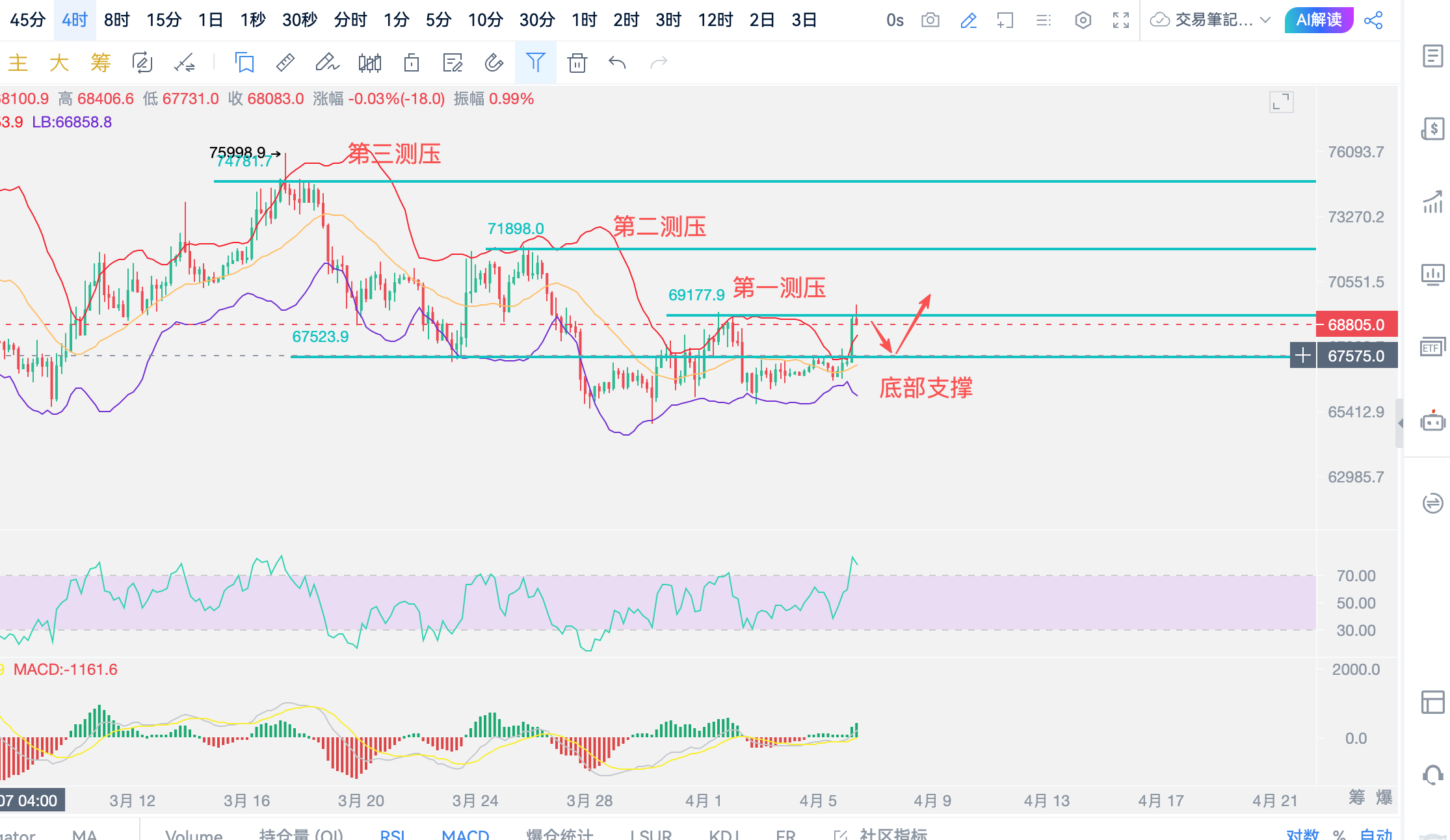 4·1比特币震荡上涨,看涨思路不变,此周剑指7万