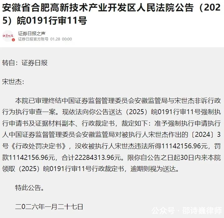 该案是中国警方联合的执法行动,但截至 2026 年 1 月,其对中国安徽证监局 2228 万元的罚没款却仍未缴纳。