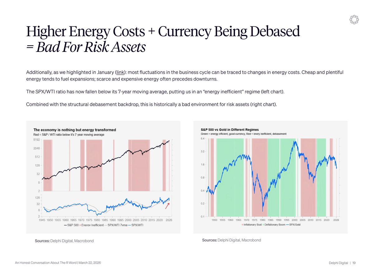 SPX/WTI 比率已降至其七年移动平均线以下,使我们进入了一个能量效率低下的环境。